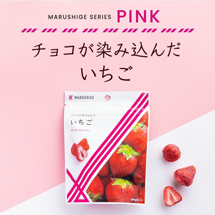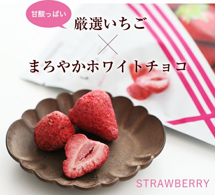 フリーズドライしたいちごにたっぷりとホワイトチョコを染み込ませました。