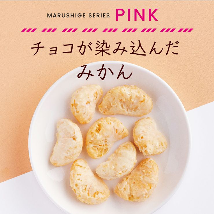 甘酸っぱさにこだわり厳選した温州みかんをフリーズドライにし、染み込みやすい流度かつ後味がミルキーでまろやかなくちどけのよいホワイトチョコレートを染み込ませました。