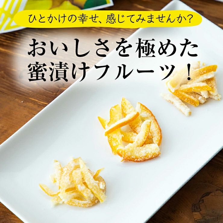 瀬戸内産のレモン皮を、糖蜜でじっくりと漬け込みました。爽やかなレモンの香りがくちいっぱいにひろがります。まろやかな酸味と甘みが凝縮されたおいしさを、ぜひお楽しみください。