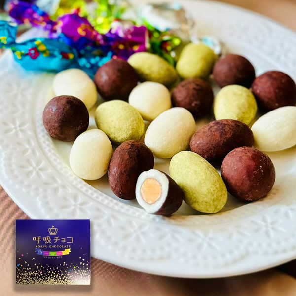 ギフトにもおススメの魅力的なチョコレートセットです。お菓子のまるしげの看板商品である呼吸チョコの4種類のフレーバーがSサイズは合計19粒、Mサイズは合計37粒が入っています。