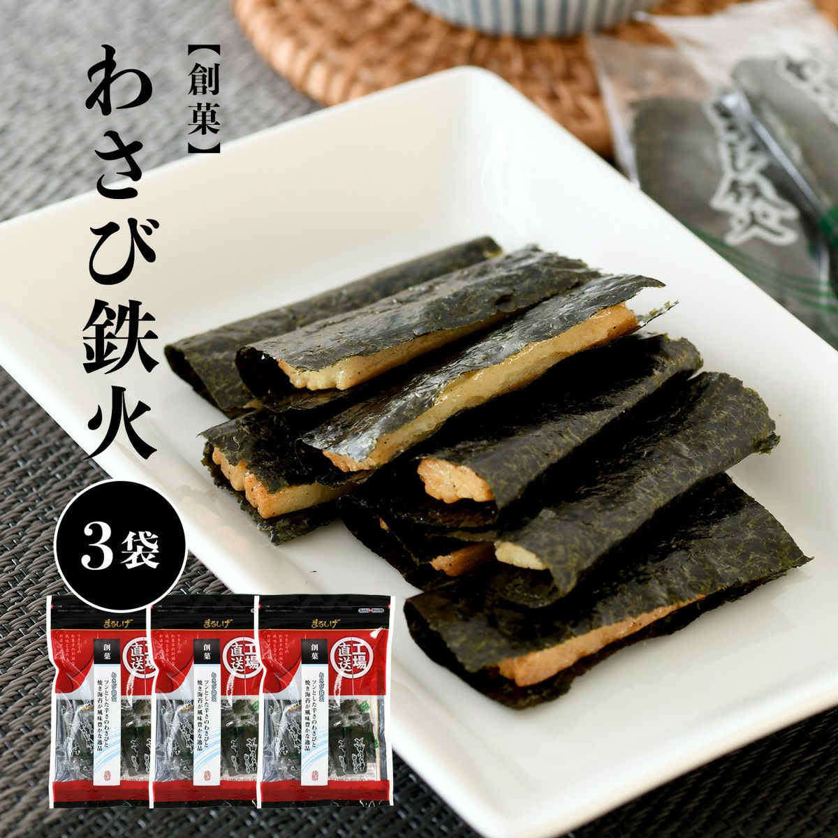 他の画像を見る ツンとした辛さのわさびと焼き海苔が風味豊かなおかきです。 わさび鉄火 おかき《3袋セット》 NEW!! 送料無料 当店特別価格 ¥ 1,780 税込 カートに入れる お気に入りに登録する